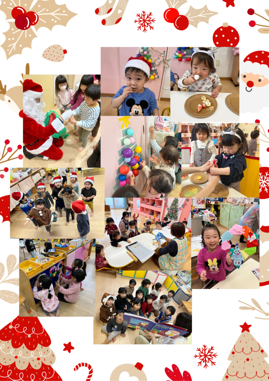 12月24日水曜日の保育園ではクリスマスパーティー、クッキングを行うクラスもあり、クリスマスを楽しむ姿が見られました♪